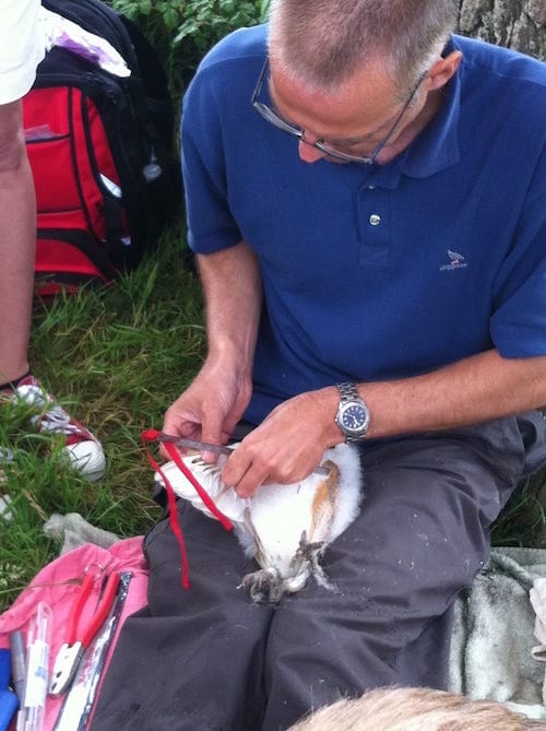 Last year I had the opportunity to visit a nearby farm which has a barn owl nesting box up in one of their trees and watched while the chicks were carefully taken out, weighed, measured and ringed by Tim, a local expert. We decided we would like a nesting box onsite here in the hope that we might attract a breeding pair – the Barn Owls using the farm’s nest box can be regularly spotted hunting in the fields on our boundary and had several chicks last year who will need accommodation! Volunteers with our Employability Project made up a box to the specification needed and a couple of weeks ago, Tim, Gordon, myself and one of our ACT volunteers headed out to put it up, well Tim did most of the work while I watched and took photos. So, now we wait and see whether any Barn Owls take up residence this year.